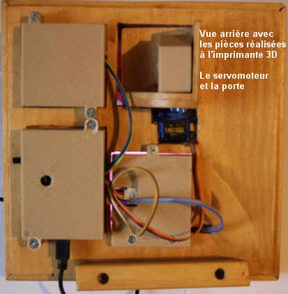Les pièces en plastique sont réalisées à l'imprimante 3D avec du fil "texture bois". Les fonds sont vissés dans le support en bois.