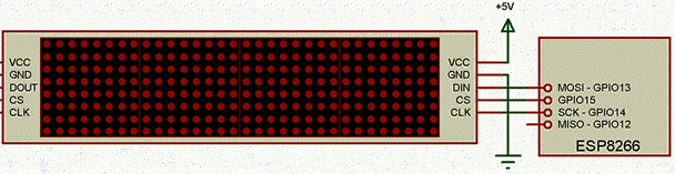 La matrice à LED se commande en SPI, on doit respecter le schéma suivant : |