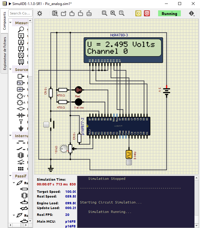 Après avoir saisi le schéma dans SimulIDE, un clic droit sur le PIC permet de charger le code. hex.